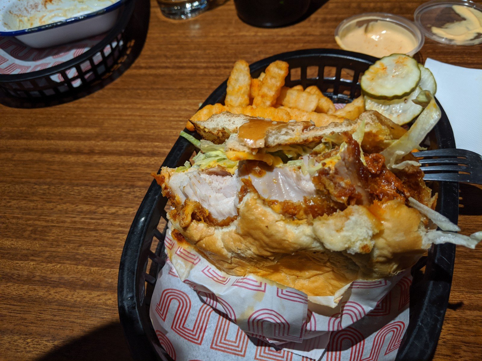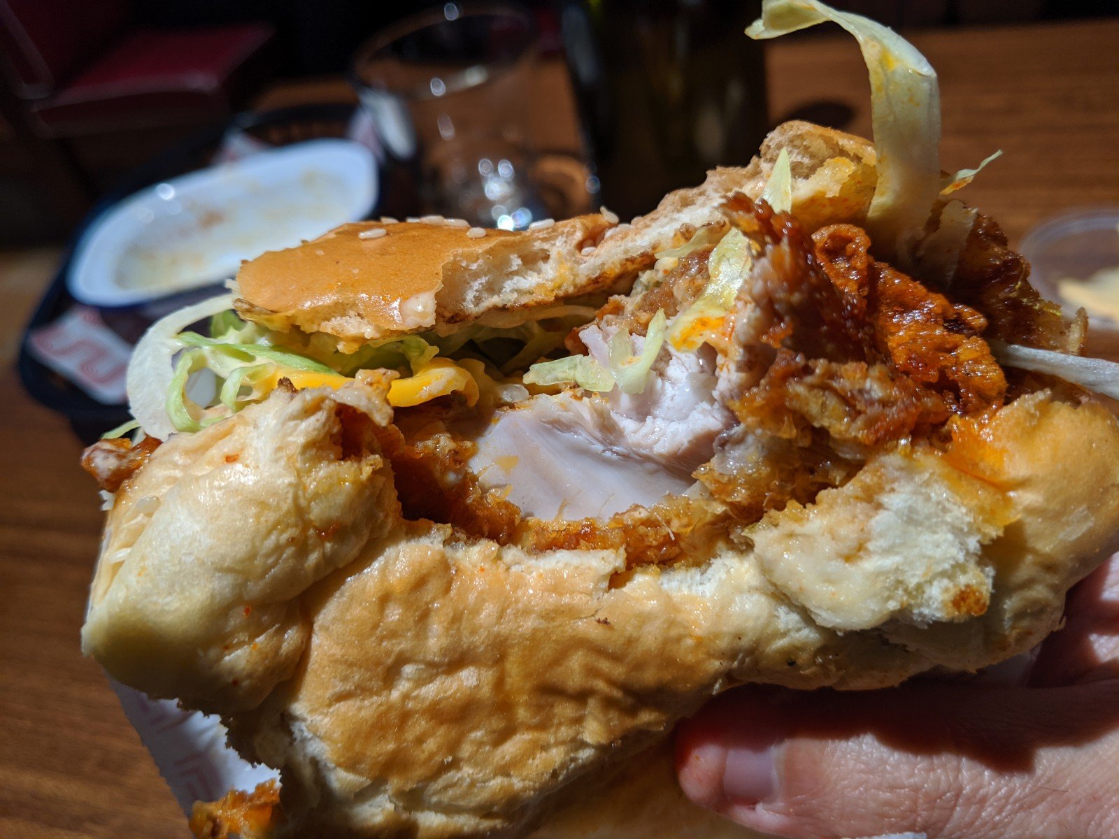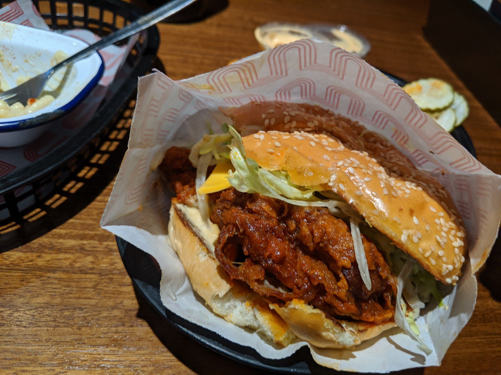 Although this wasn’t the smoked, then fried, chicken burger it was still truly amazing. The blend of freshly cooked chicken with spices, cheese and sauces was a fabulous fried chicken messy feast that is just to die for.