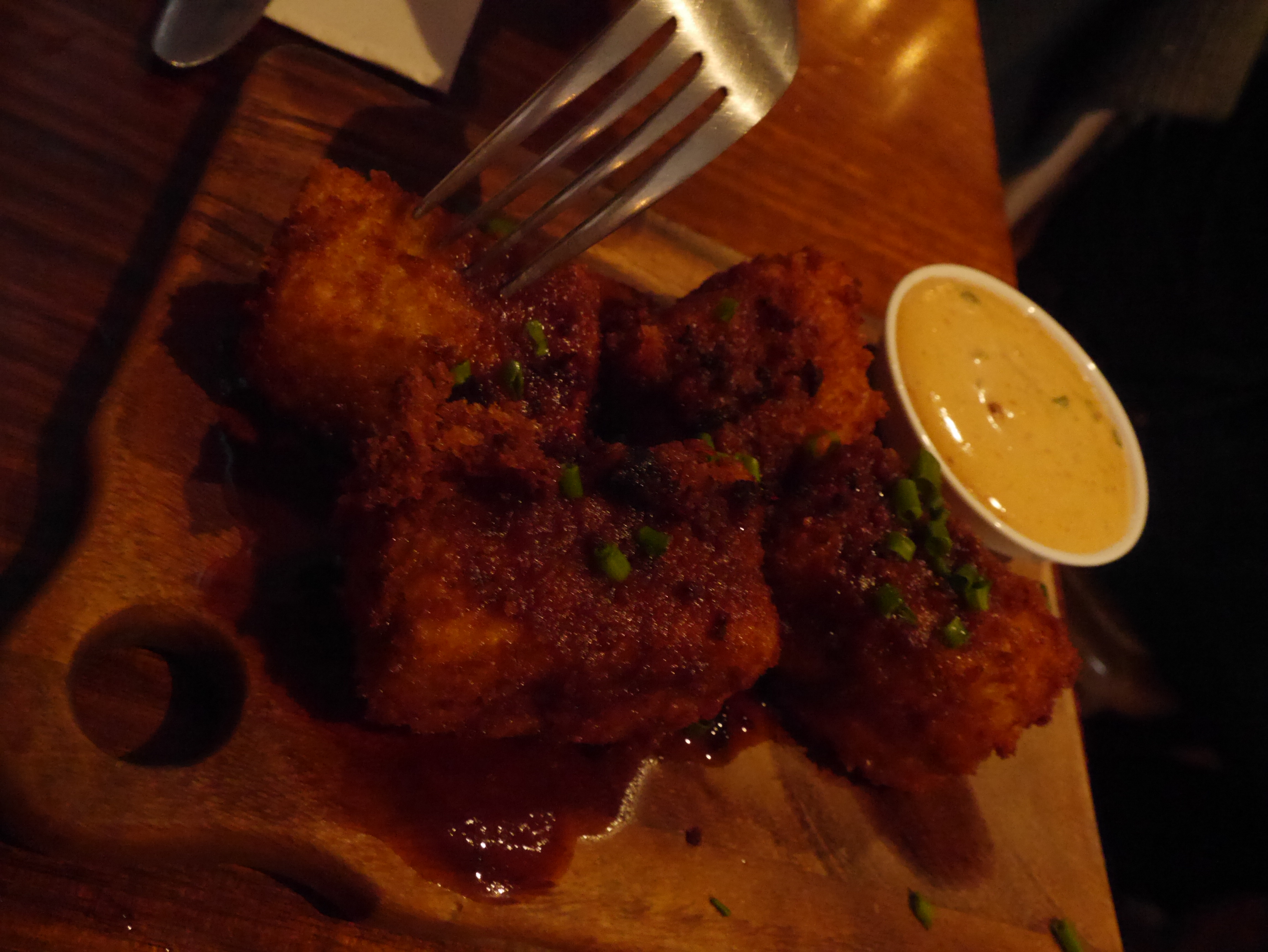 The sweet potato fries are not always available because they are made with a wet batter and take longer, but they are worth it. And if the other wet batter items coming (crispy chicken, mushrooms) are anything like the potatoes, then we’ll be back.