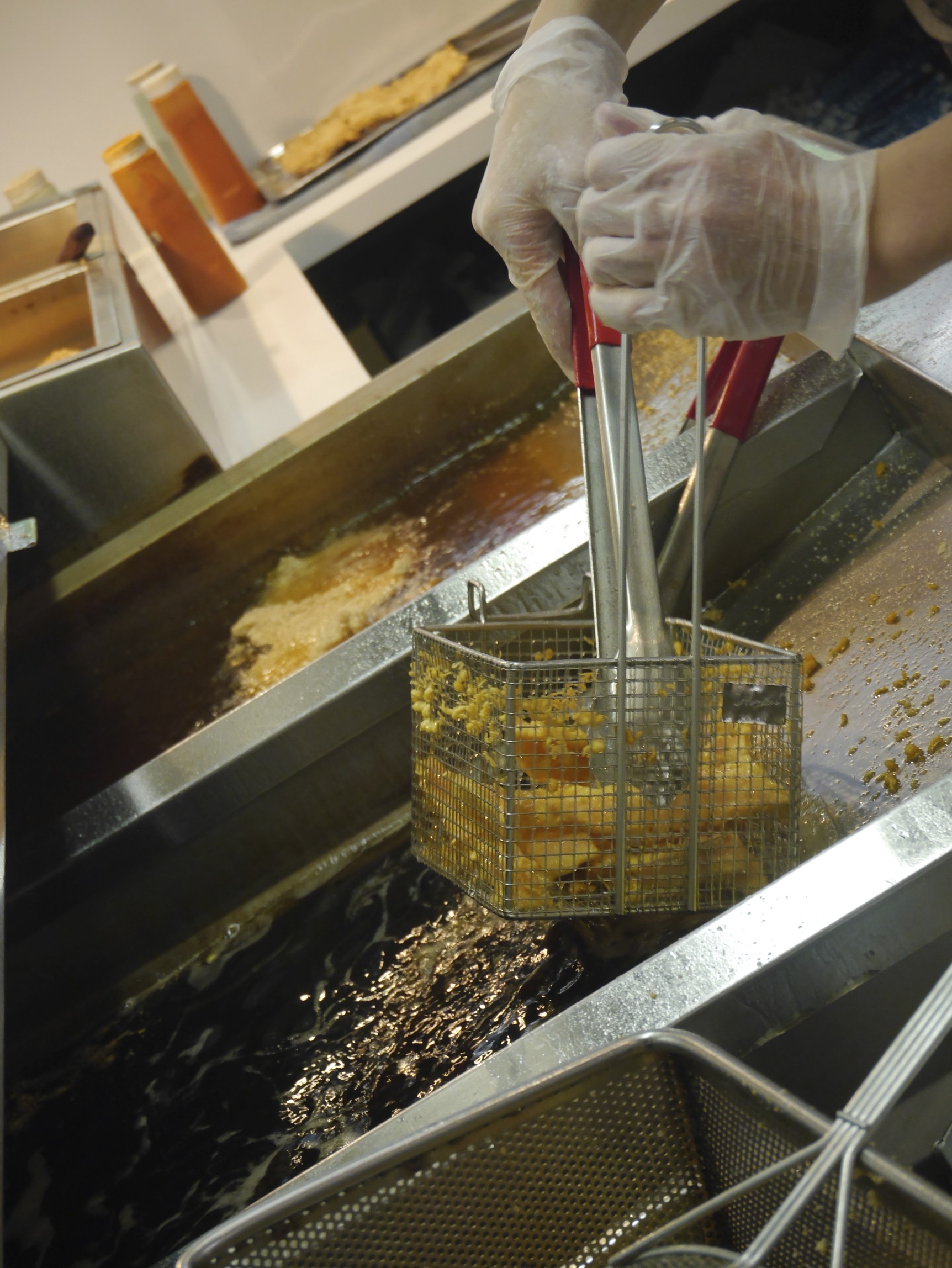The frying is done in real time from fresh (not frozen) chicken, so there’s a bit of a wait after you order, but it is worth it. The chicken comes out steamy, not too greasy and the unique tapioca breading a perfect golden color. The original version comes coated in salt and pepper, there is also a spicy version with a bit of chilli powder sprinkled on top, a hint of flavor, easy to swallow for those who can’t handle their spice. The Chick preferred the original but dipped in chilli sauce found next door at Rice Paper.