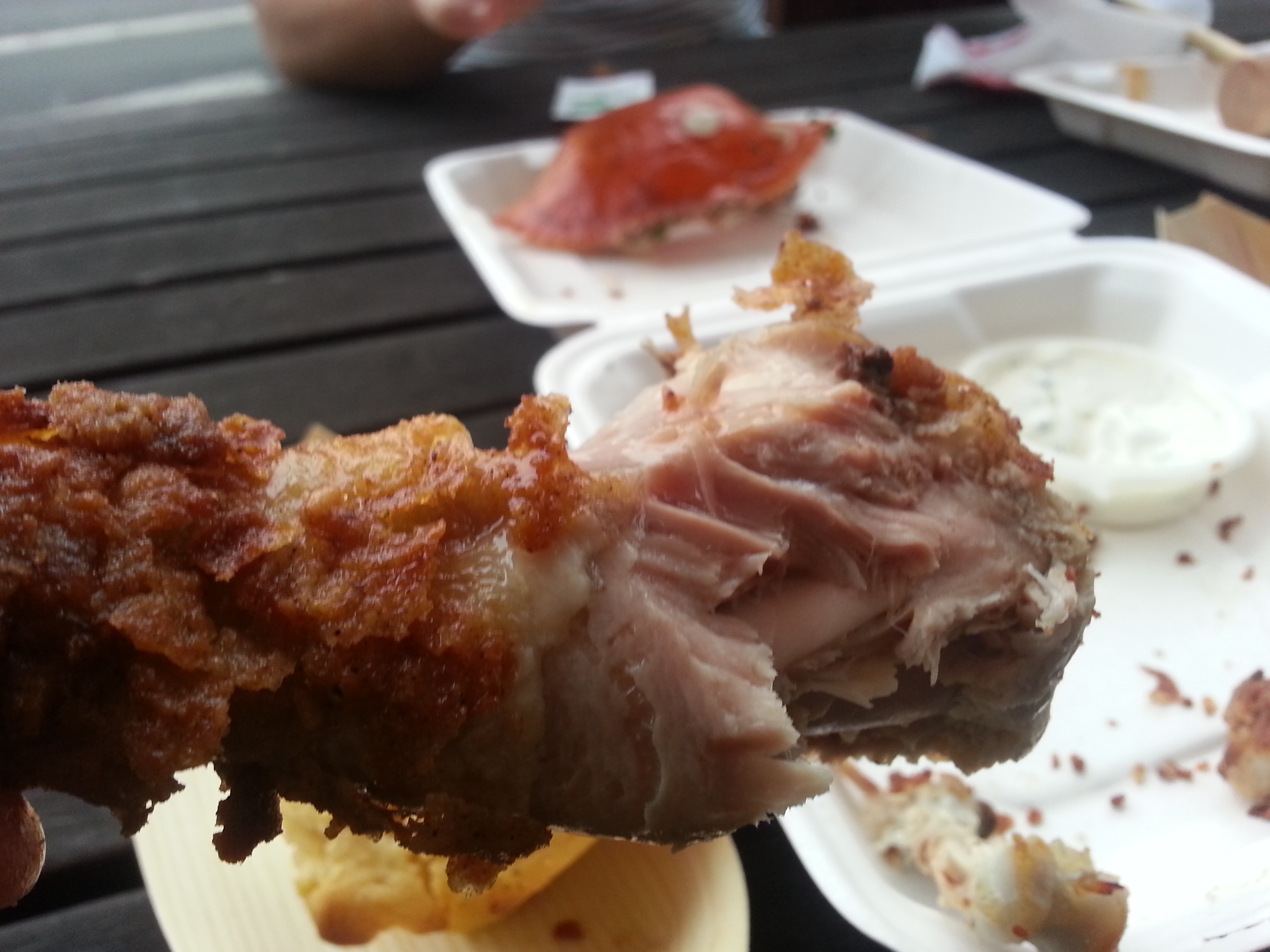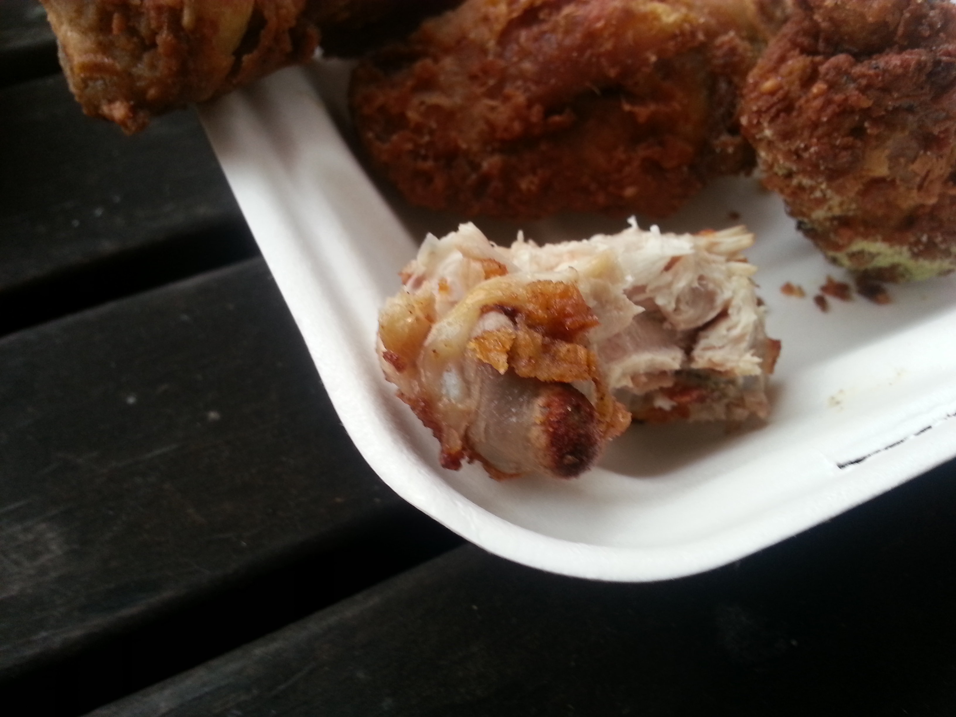 The chicken was so hot we had to resort to a fork – the chicken came off a bit stringy, but didn’t taste dry.