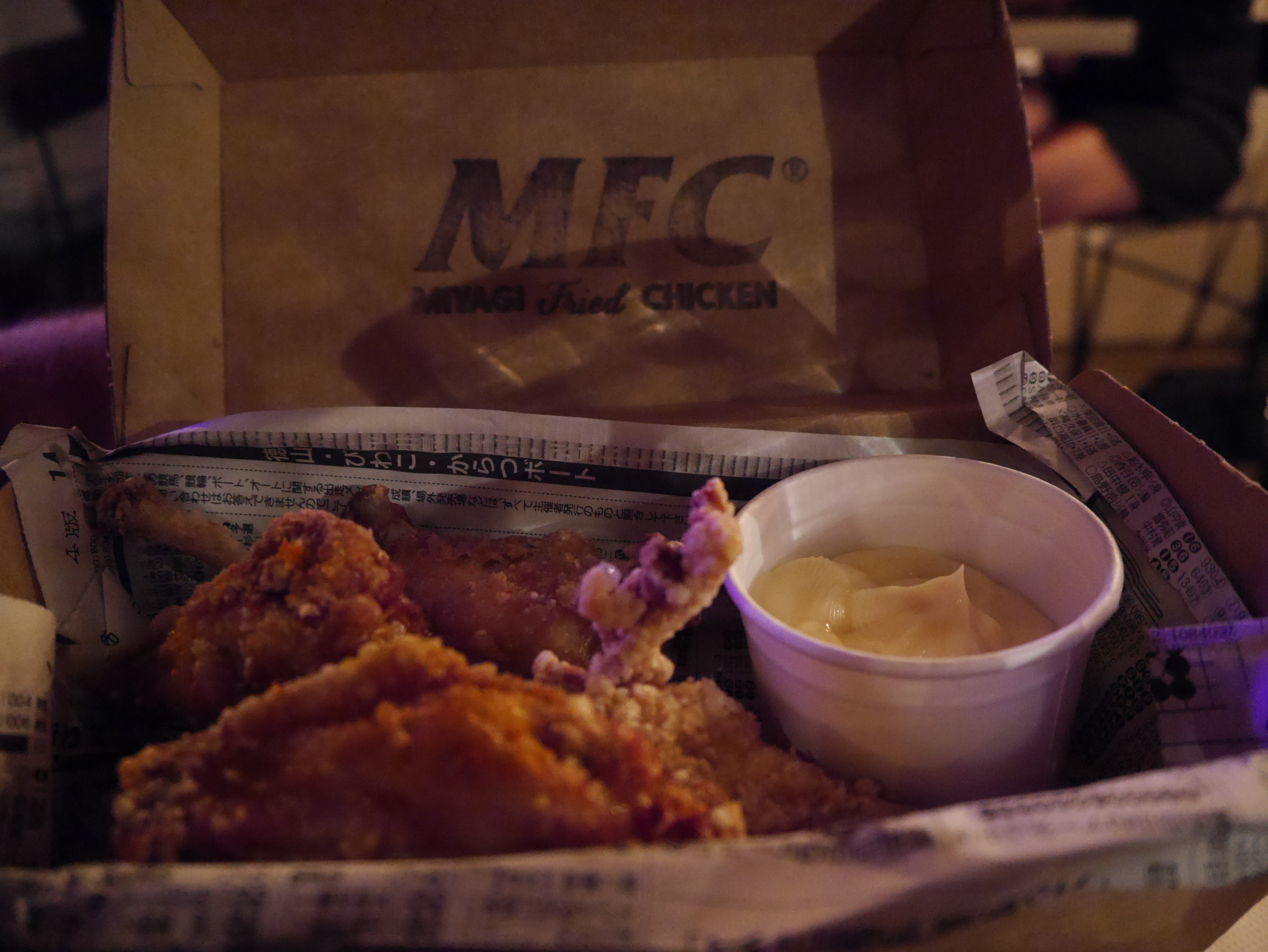 We asked for an order of the fried chicken to share and skipped the spam sushi which was also on offer. It was served in a small paper container consisting of 4 small thigh pieces with plastic wrapping.