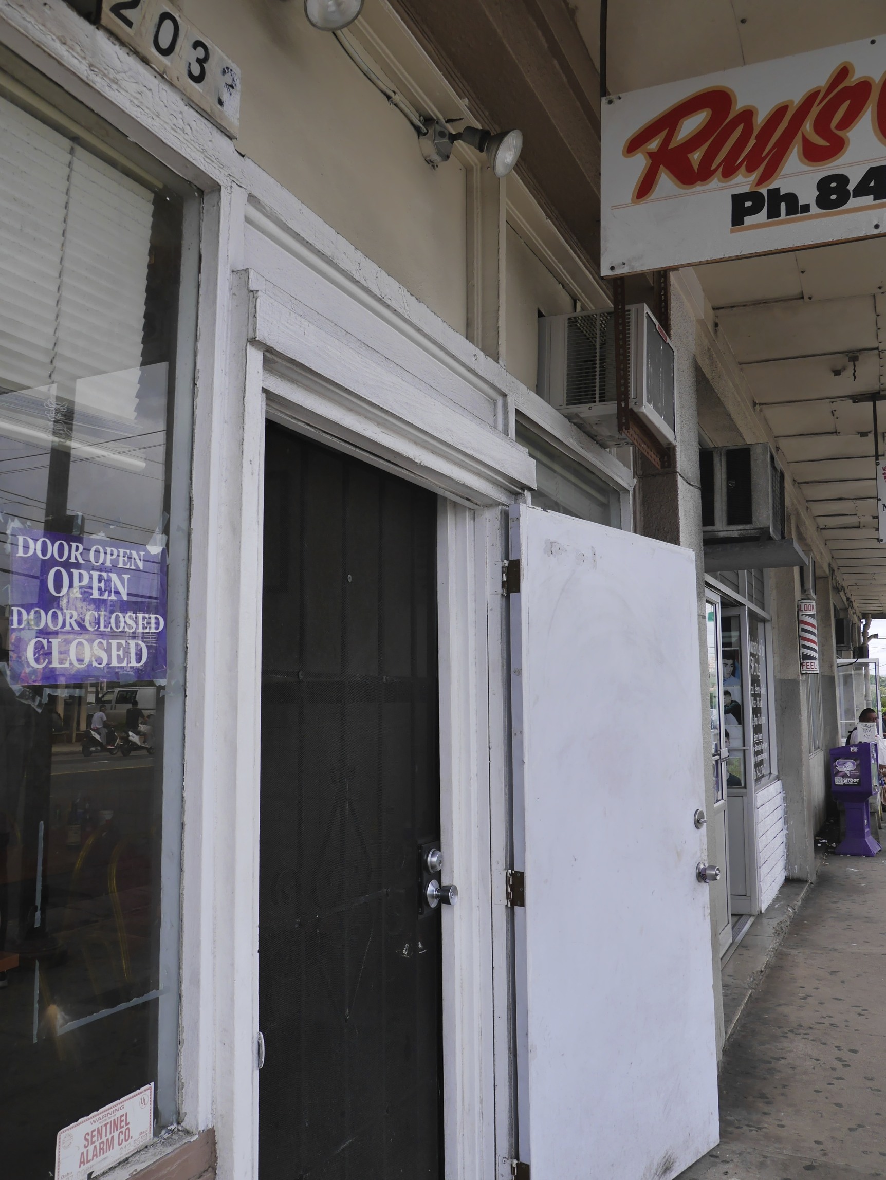 While waiting we saw plates of ahi tuna steaks and macaroni salad (Hawaiian specialty) go by and watched a man dig into a huge steak with classic crinkle fries in a basket. The chicken can be paired with steak, but our order of fried chicken consisted of 3 big, very hot, thigh pieces with two mounds of white rice. The chicken was single coated and very crispy, almost no breading, but the skin was perfectly fried. It was so hot that we had to let it rest for a bit to cool down. We struggled between burning fingers and the desire to bite in, and in the end had to use a fork. Extra points for truly fresh cooking, it was worth the wait. We added a bit of tabasco sauce to get a bit of kick, but the chicken was tasty on its own. Overall the pieces were big, juicy, and steamy and we enjoyed our experience at Ray’s. Hollywood has his eyes set on the Ray’s ribs and cheeseburgers for the next visit.