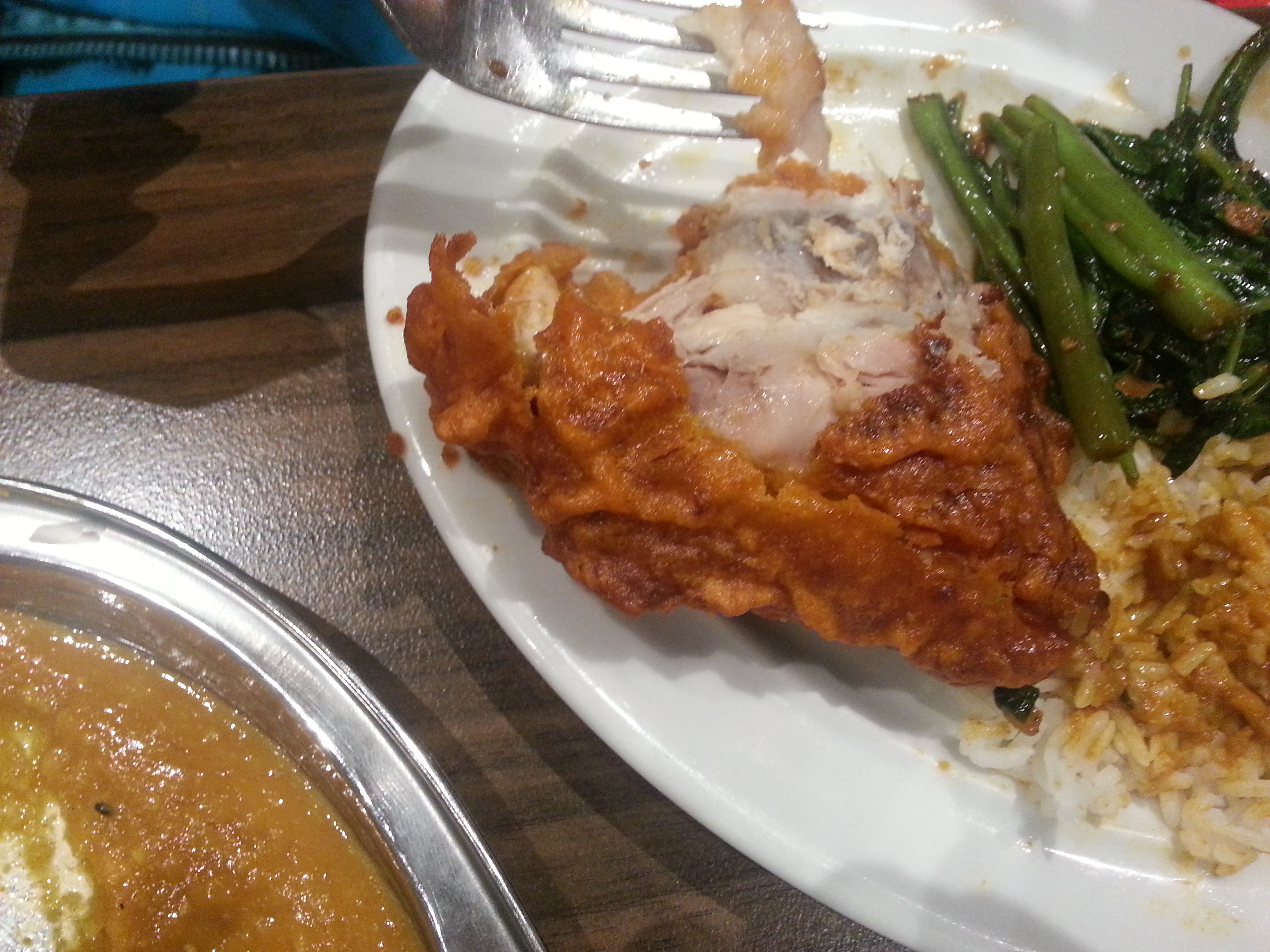 The fried chicken came in tender pieces without bones. It was hot and steamy which The Chicken Scene thinks makes a good sign of fresh cooking, thumbs up! The pieces seemed single coated but were nonetheless very crispy and rightly spiced. Hollywood, however, was looking for more of a kick and asked for some hot sauce. He was served three different bottles of hot sauce which was a very good sign that this place knew what they were doing. The curly fries were good, addictive and very moreish.