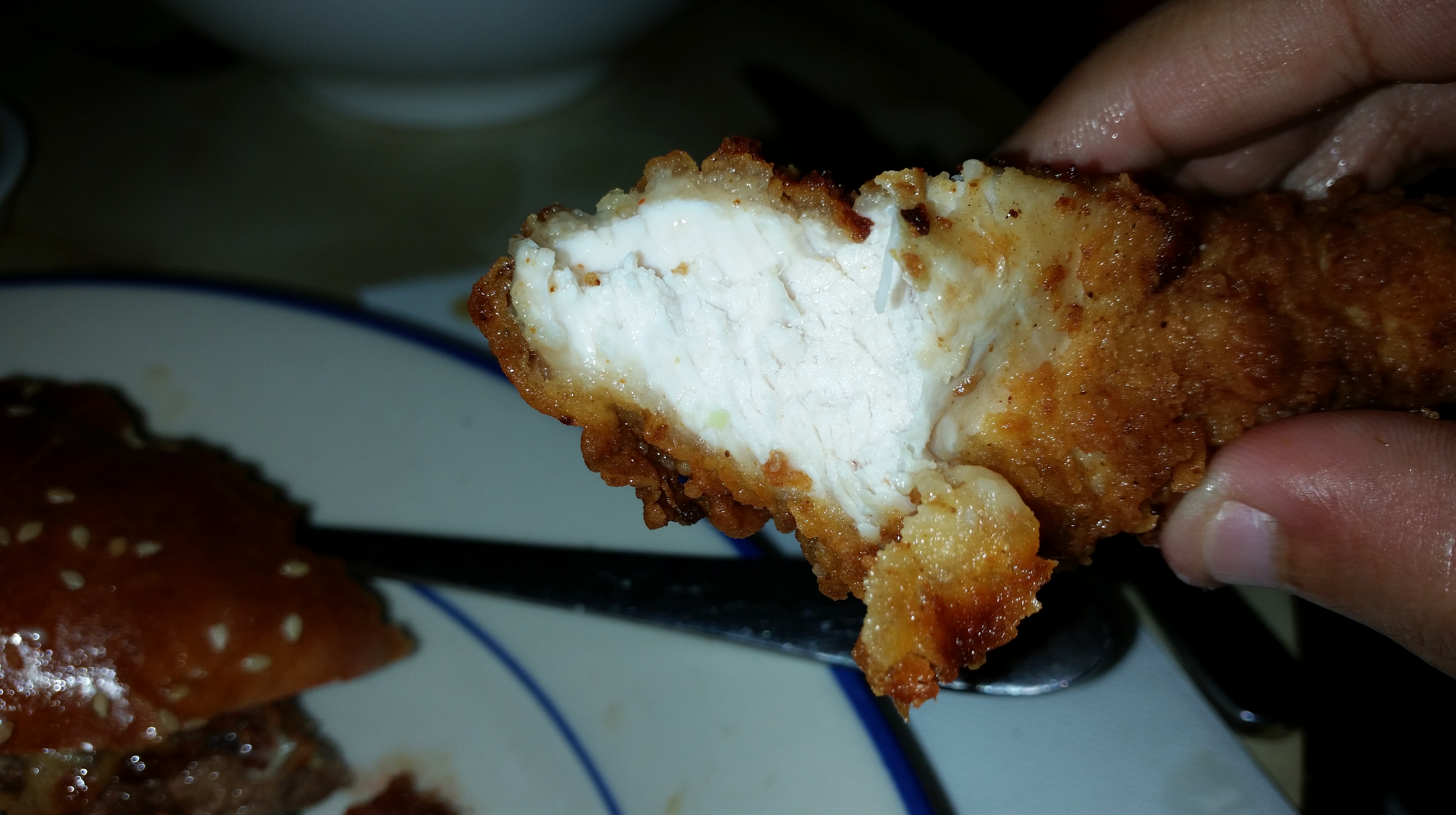 Although the place had a funky decor, the chicken wasnt that great. The Gang Jung was similar to nuggets and while it seemed fresh it wasnt really spicy. The chicken taste wasnt that prominent and was covered in more of a sweet chili sauce which gave it more of a sweet taste which overpowered the whole experience. This was the same case for the wings and chicken schnitzel. The soy version had similar tastes but was a bit more saltier which made it seem better.