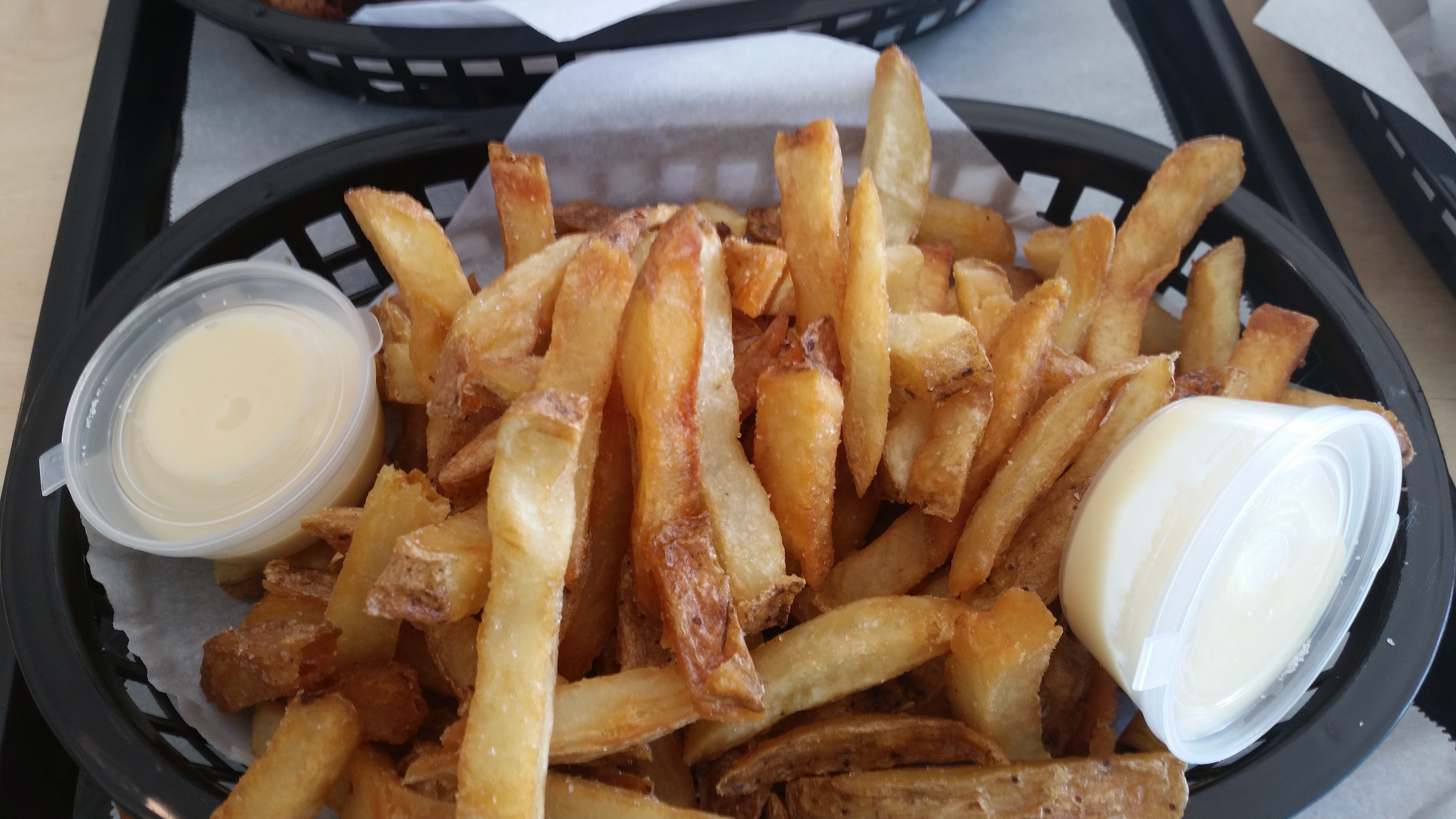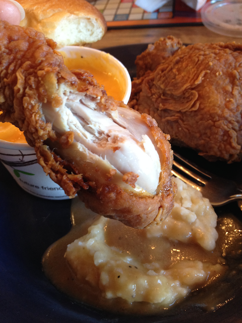 The chicken is made in large batches and it was not a busy day, so our chicken sat under the lamps a bit too long. The biscuits were fluffy and soft, not the KFC style, and a touch sweet. Good for soaking up gravy.
