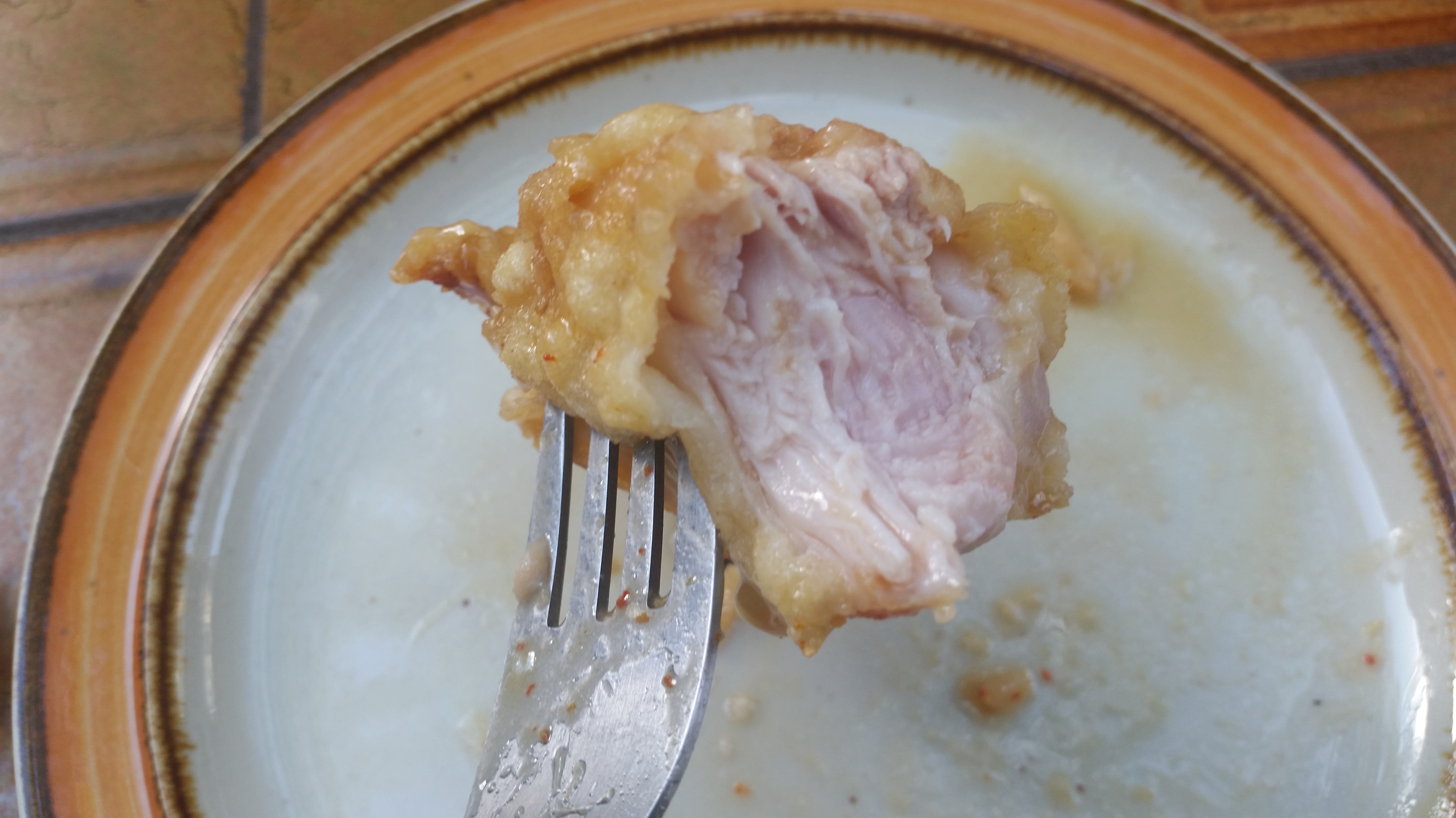 The chicken was covered in saucy mixture and was very juicy and fresh. The sauce mix did add more to the juiciness and the pieces were boneless and rather big, which made it good for sharing. The sauce was more like a batter sauce which made it a bit greasy and the side sauce did add a good taste. However overall the chicken wasnt top notch but we kinda recommend this place if you’re in the area.