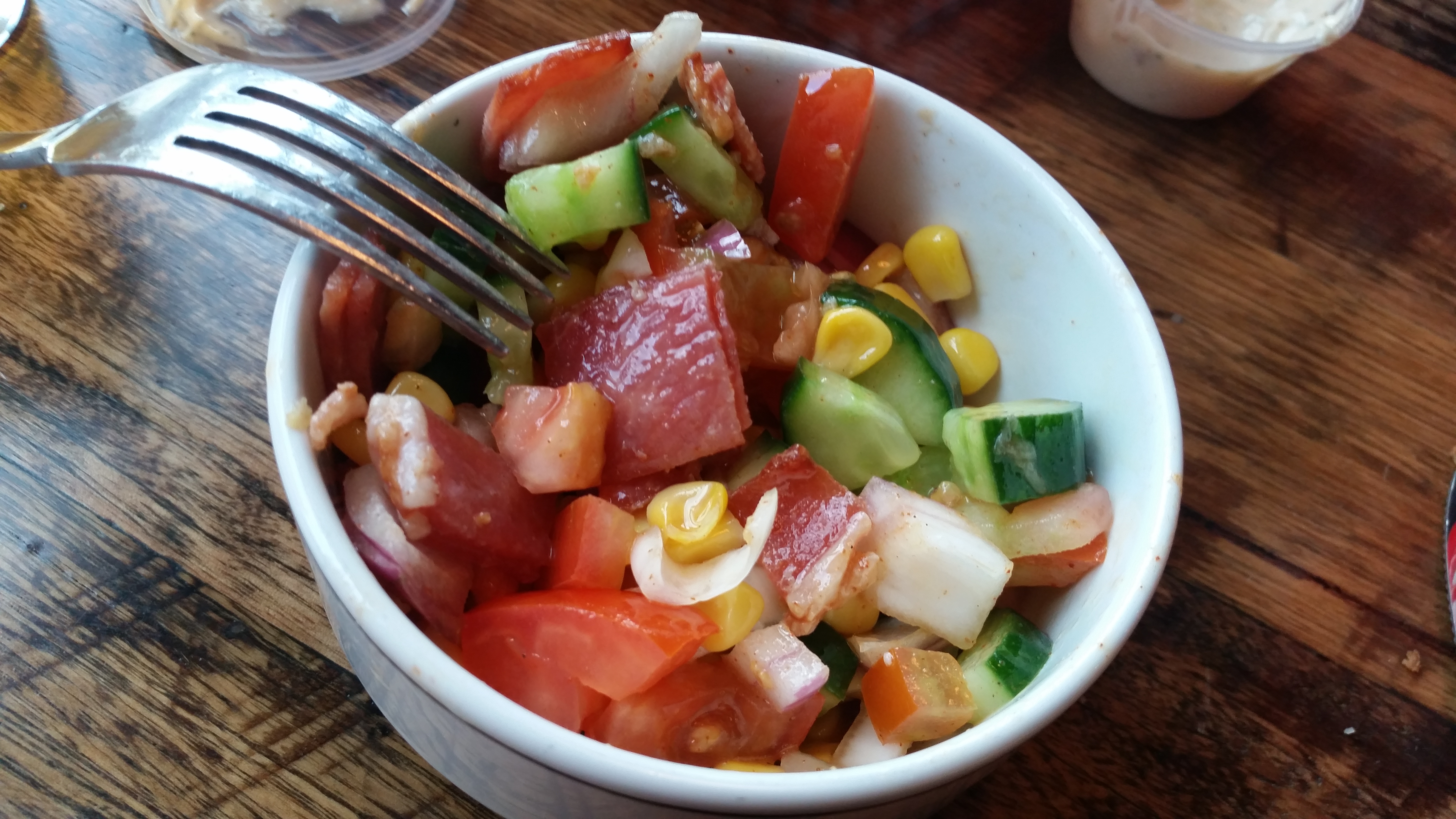 The chop salad was really good, it was surprising it actually had pieces of bacon in it!