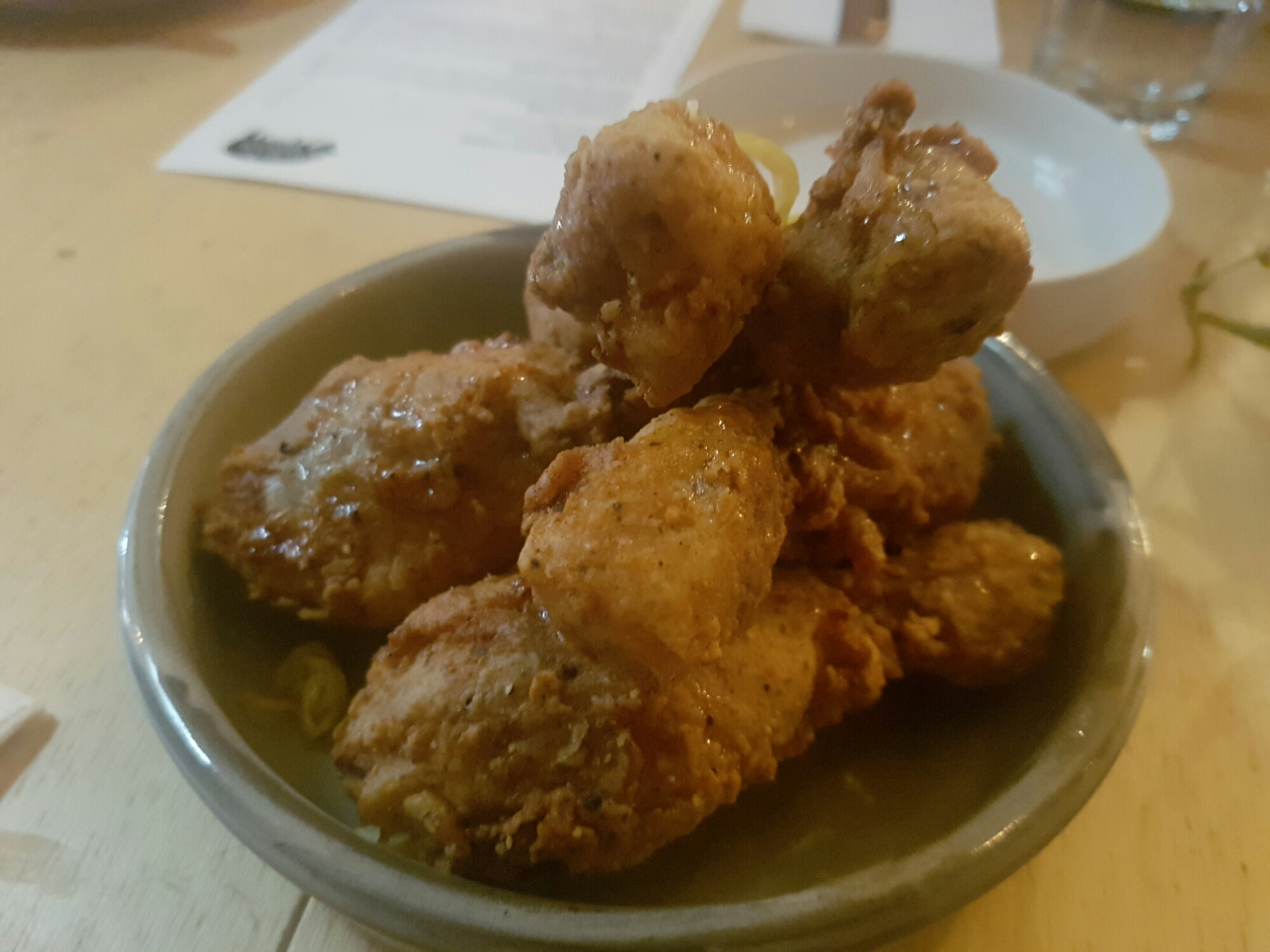 The chicken on the menu was a salt and pepper fried chicken with honey and pickled chilli.