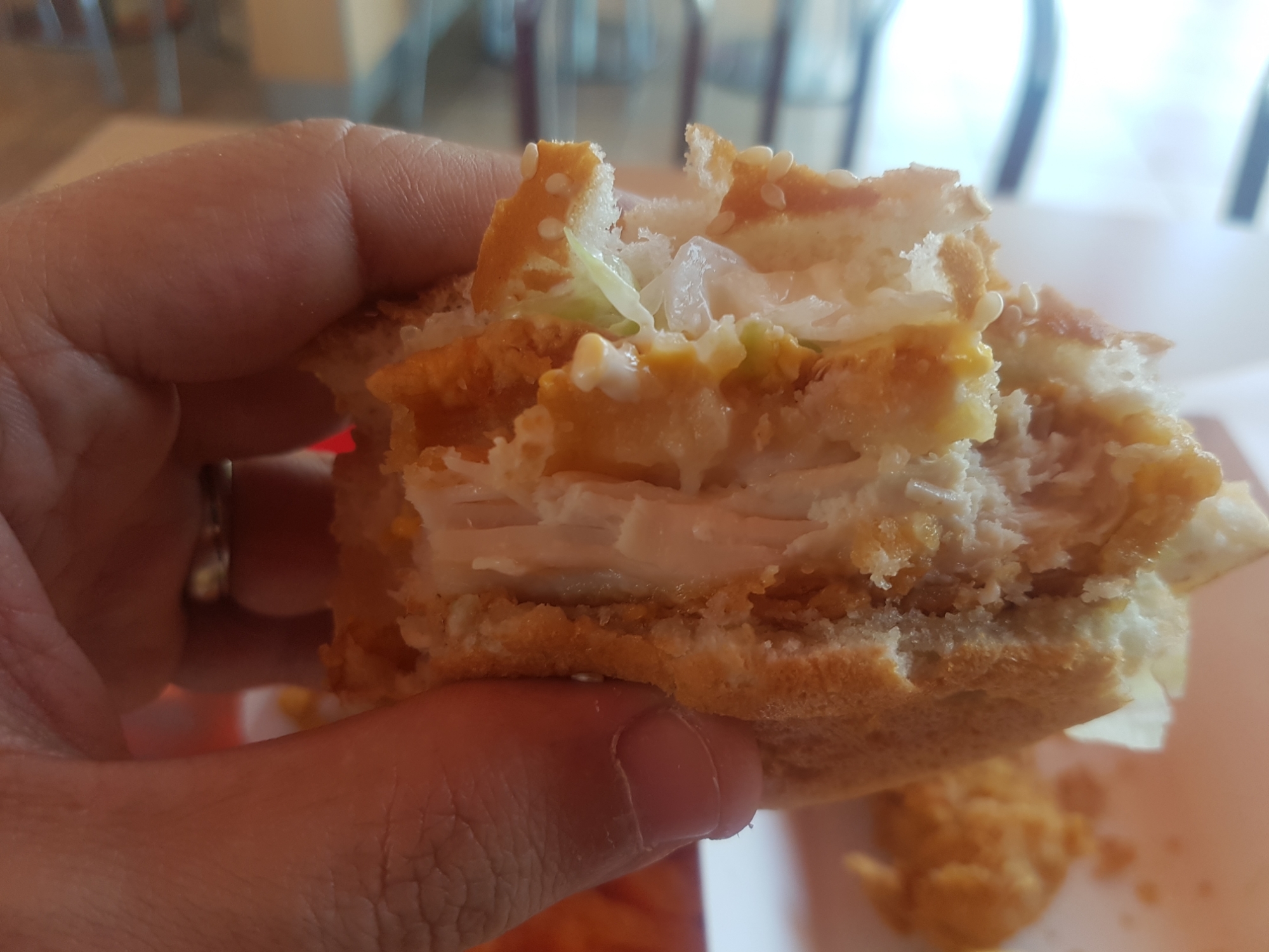 The burger was good, right level of spicy with cheese and some spicy mayo. It was still good, however the bread was a bit too sugary bready, but still good