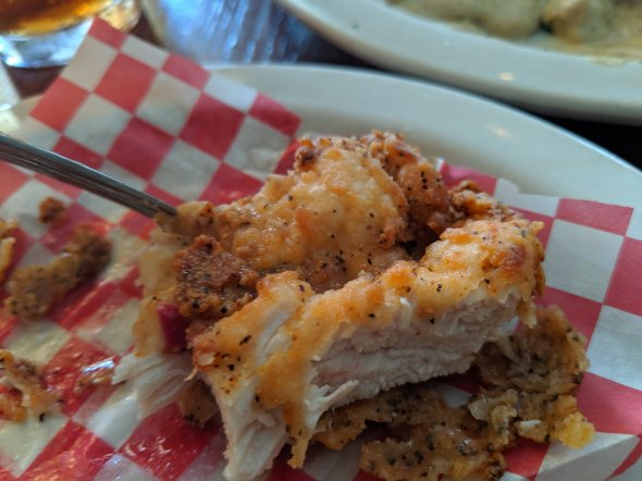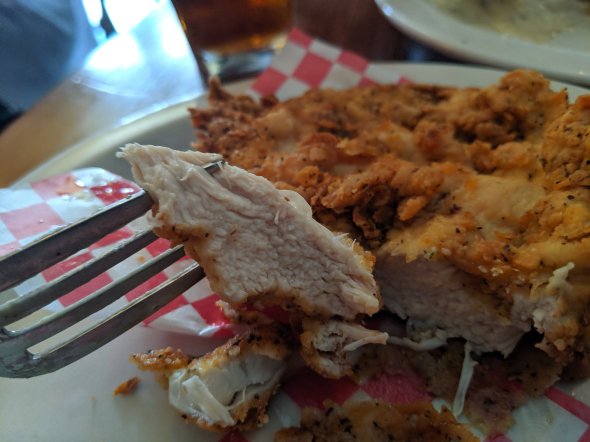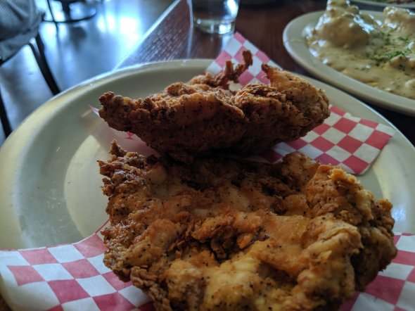 This place is full of amazing southern style feeds and the fried chicken they had was simply amazing. Steamy, fresh and Crunchy as hell all with the right spices and when paired with the sweet waffles or with their heavenly rich sausage gravy it is an absolute banger!