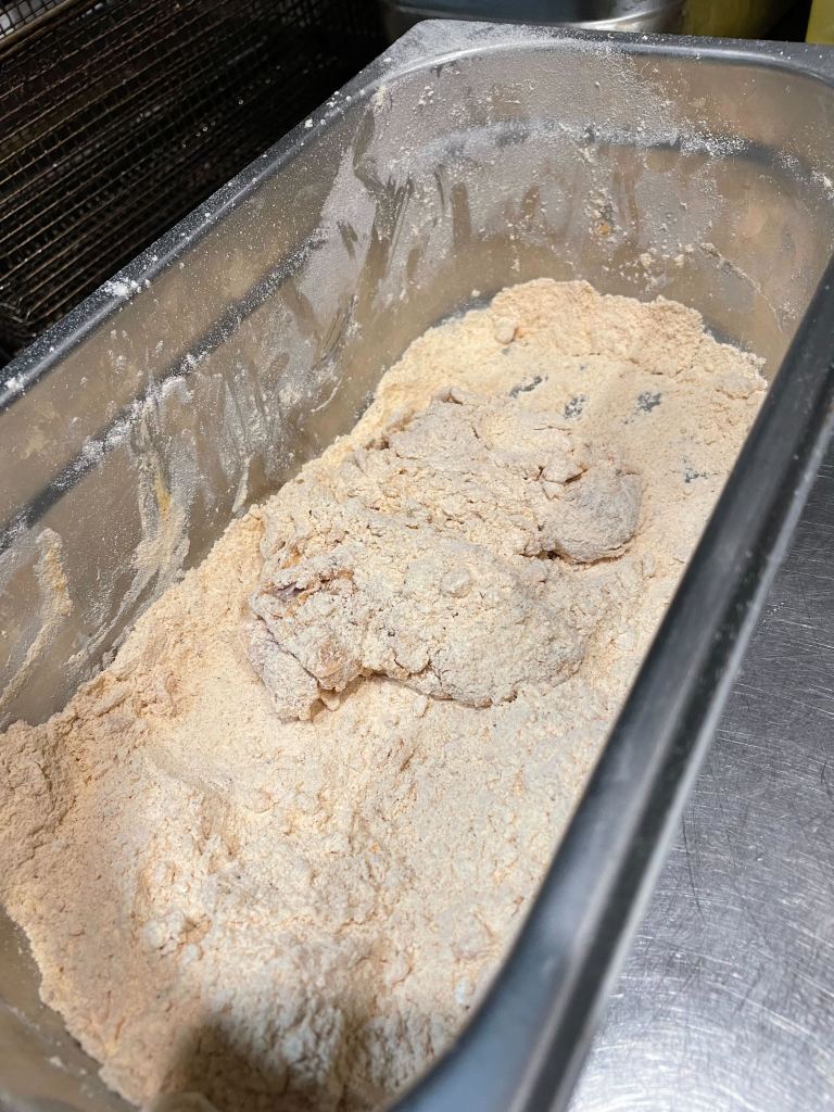 It all starts with the chicken being high quality free range organic from Inglewood Farms. Que Club makes their burger using chicken thighs. They are coated in a mixture of 3 types of flour with spices and dredged in buttermilk before they are fried. The spices used here are Nashville style, so think of cayenne and smoked paprika.