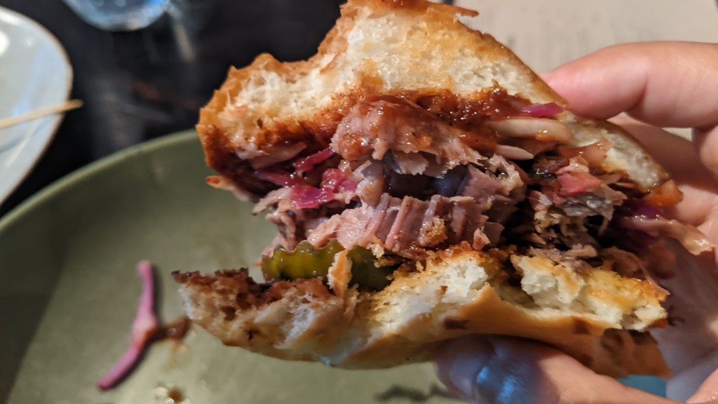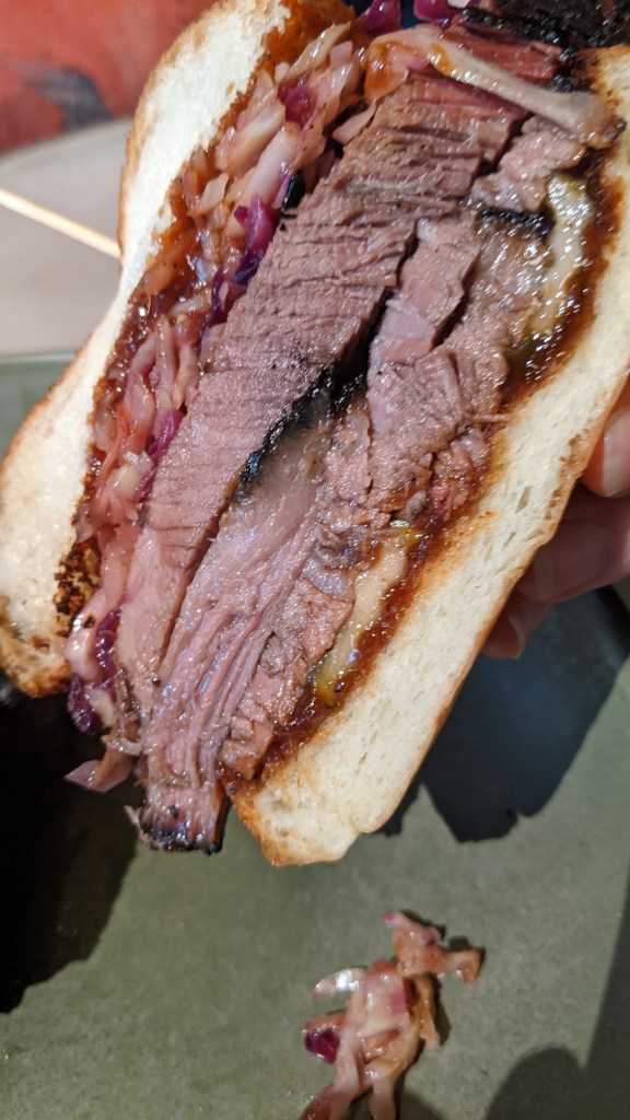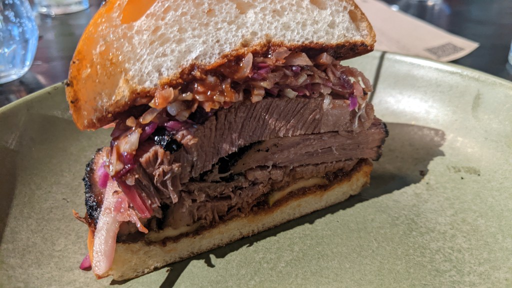 We were still a bit peckish and decided we couldn’t leave without having some of their smoked brisket. We went for the famous brisket burger which was some of the best brisket we’ve had. It was fall apart melt in your mouth and the way this burger is made with a special cooked slaw really makes the meat shine.